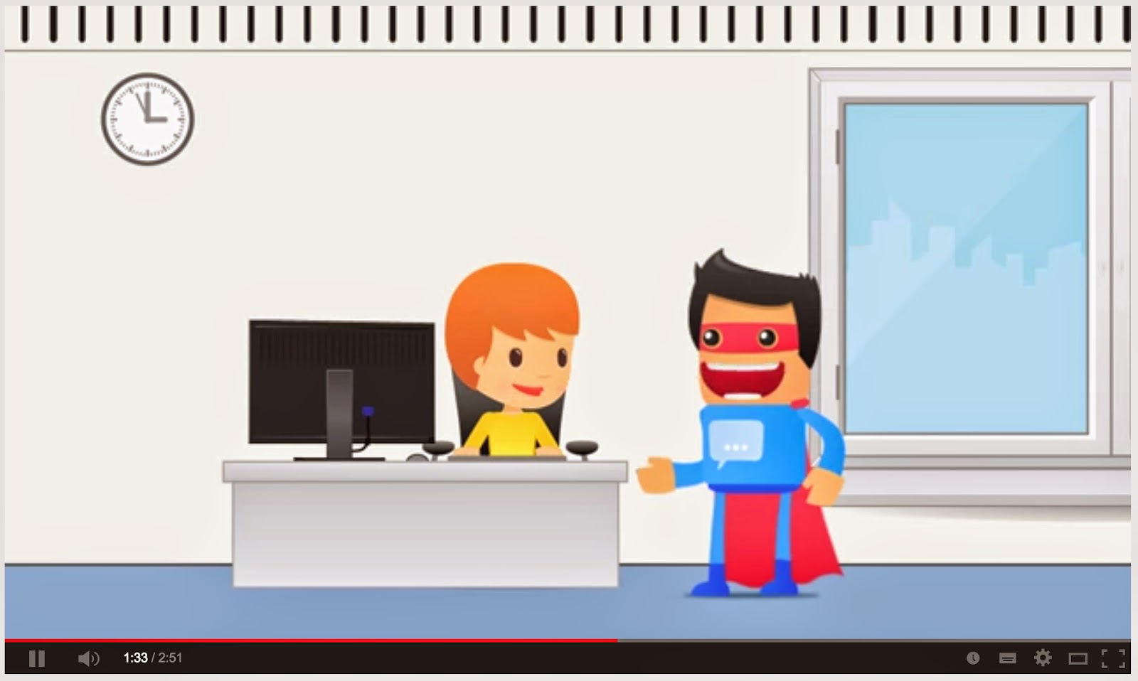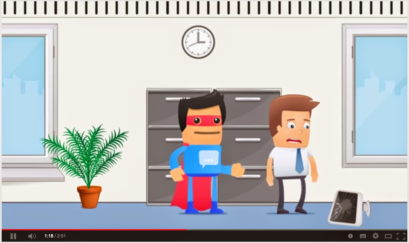 In lieu of being able to embed the video, here’s stills of Social Media Man in action.