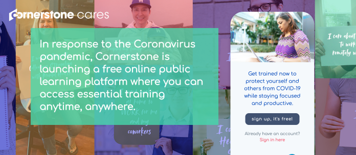 As COVID-19 continues to spread globally, it is profoundly changing the way we live and work. Our hearts go out to those already impacted by the virus, and we want to do everything we can to protect and support our global community through this unprecedented period of uncertainty. Since millions of people around the world turn to Cornerstone for continued learning, we wanted to use our tools to help the community during this crisis.